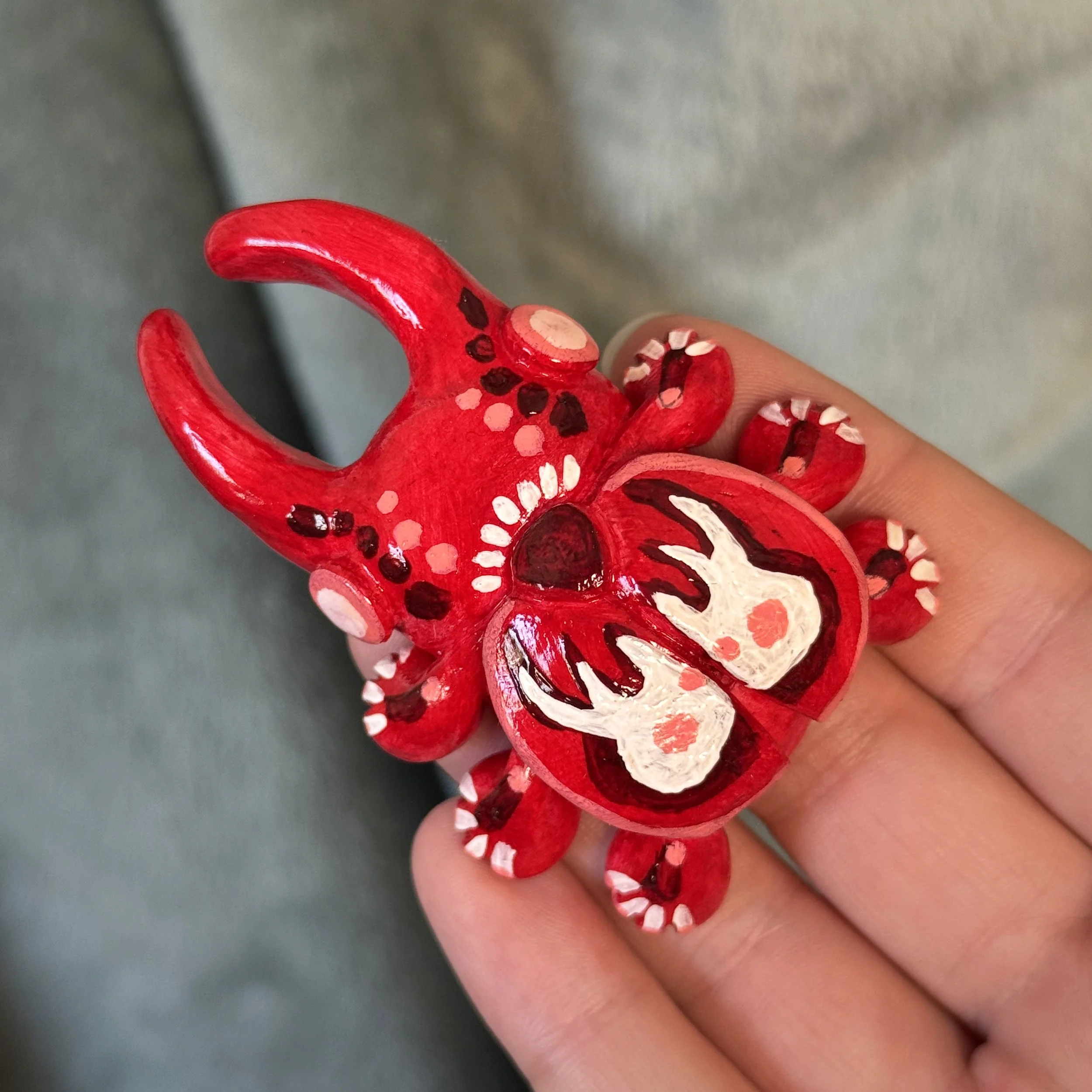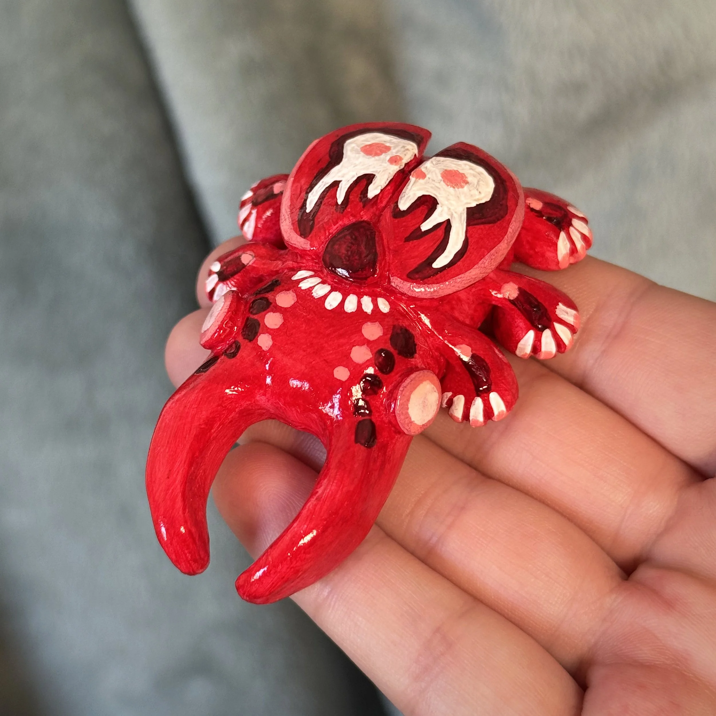 This ~2.75-inch figure is a resin cast based on a clay sculpture I made. It has been hand-painted with unique colors and patterns inspired by Halloween and coated with a clear, glossy varnish.